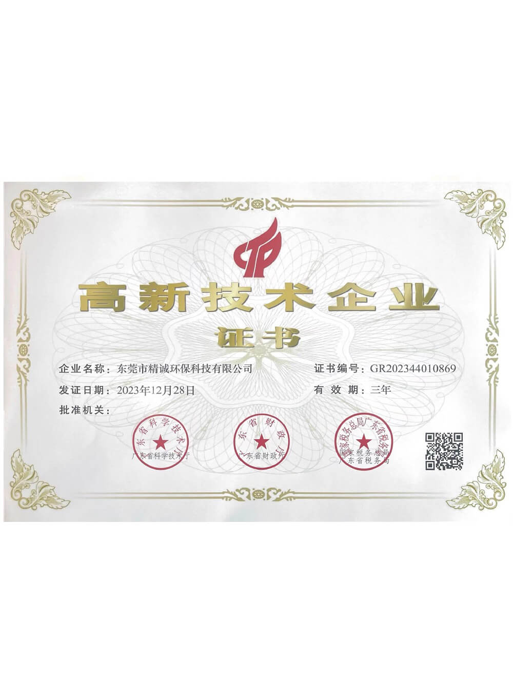 - 2008年:戰(zhàn)略升級,遷址東莞大朗,正式更名為東莞市精誠環(huán)保科技有限公司。